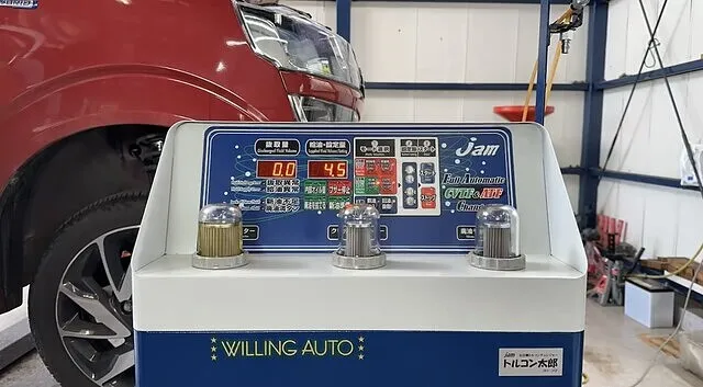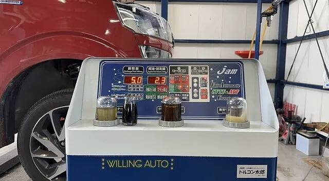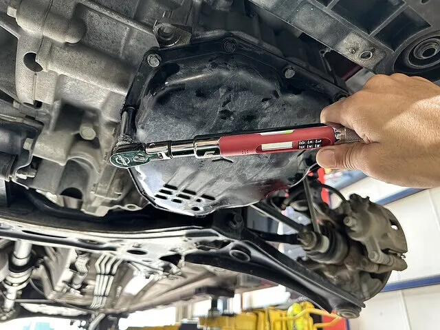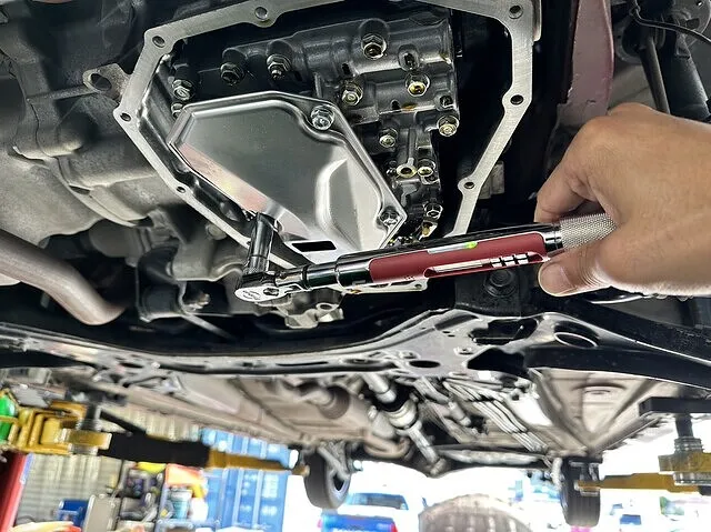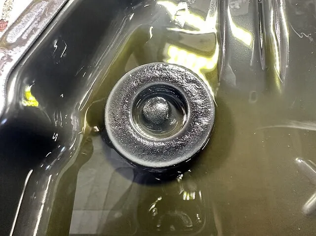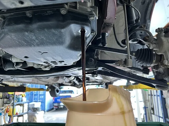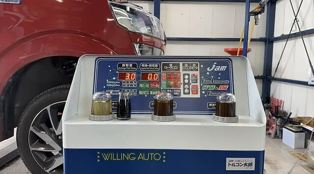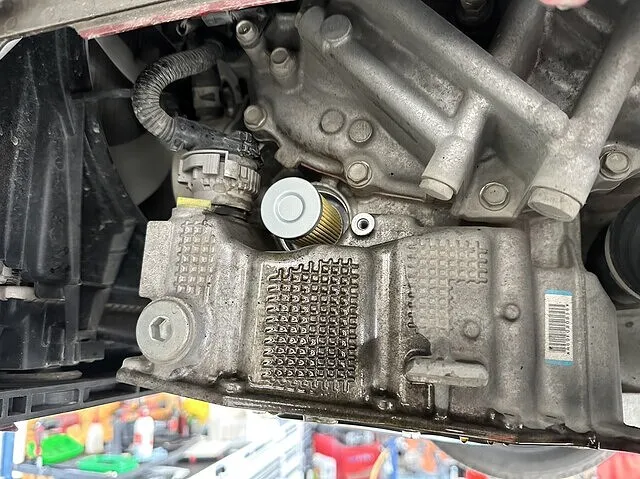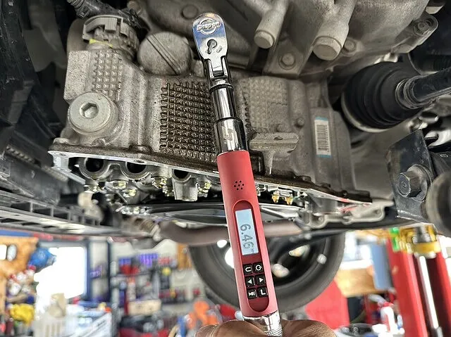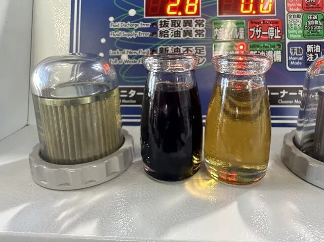 オイルパン脱着時に抜けたオイルを充填し、クリーニングモードにてオイルを循環させます。