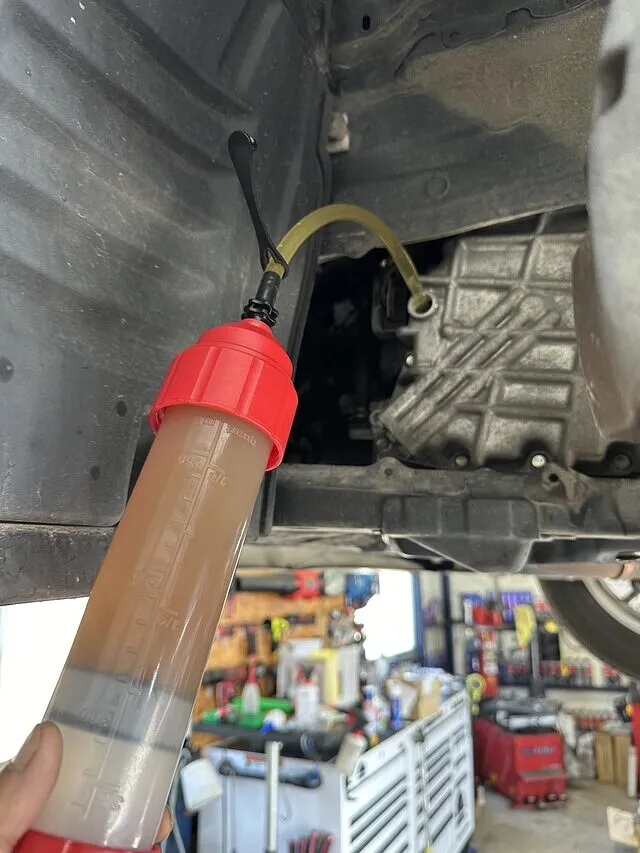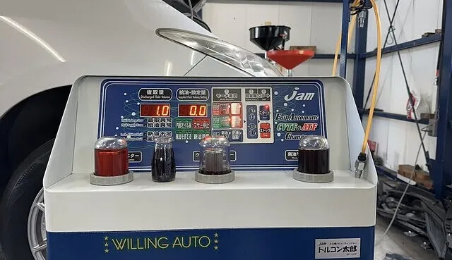 オイルパン脱着時に抜けてしまった分を充填しオイルを循環させた後、圧送交換を行います。