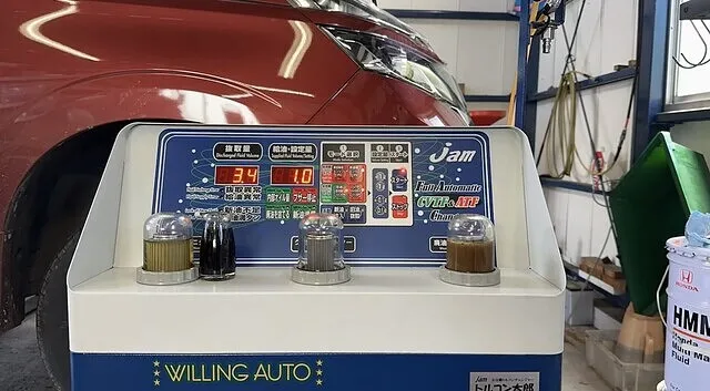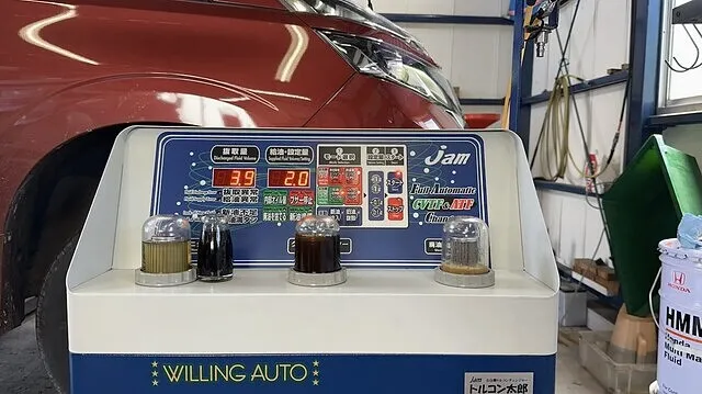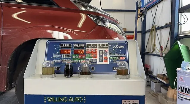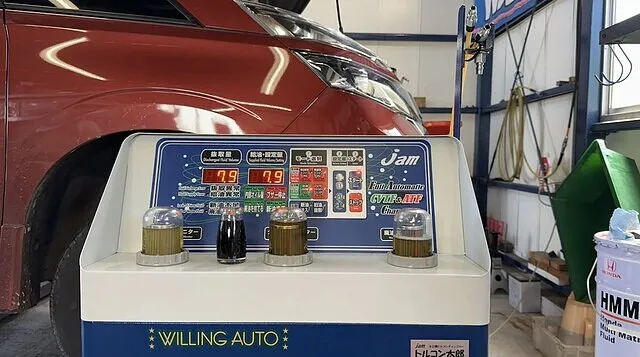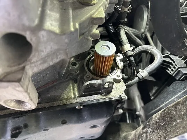 オイルパン脱着時に抜けた分のオイルを充填し、オイルを循環させます。
