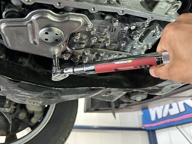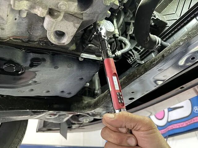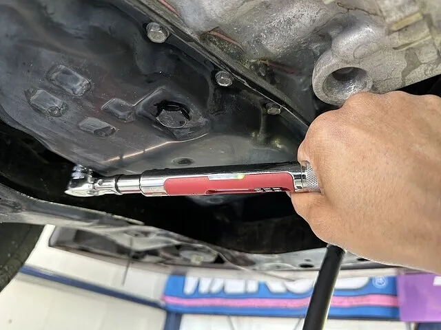 ストレーナー、オイルパンをスナップオンデジタルトルクレンチを使用し取り付けます。